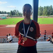 s. 15.8.2012 Ennätyksiä| 60m | 9,57 | 2025 | | 200m | 31,30 | 2025 | | 800m | 2:52,77 | 2025 | | 1000m | 3:55,80i | 2025 | | 60m aj (76,2cm) | 12,45 | 2025 | | | | | | Korkeus | 134 | 2025 | | Pituus | 3,94i | 2025 | | Kuula 2,5 kg | 11,27 | 2025 | | Kuula 3kg | 9,09i | 2026 | | Kiekko 600g | 32,93 | 2025 | | Kiekko 750g | 30,66i | 2026 | | Moukari 2,5kg | 20,23 | 2025 | | Keihäs | 20,70 | 2025 | | 4-ottelu | 1261 | 2025 | | 5-ottelu | 1203 | 2025 | | 2000m kävely | 14:08,16 | 2025 | | | | | | | | | | | | |